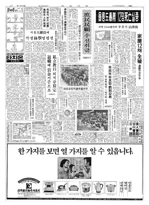 - 새벽 152㎜쏟아져 두곳서 山沙汰(산사태) 울릉도暴雨(폭우) 12명死亡(사망)실종