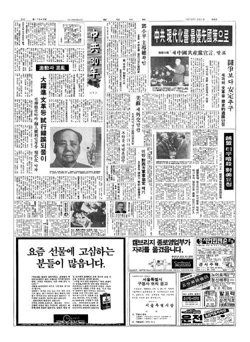 - 建國(건국)30周(주)「새 中國共産黨宣言(중국공산당선언)」발표 中共(중공), 現代化(현대화)를 最優先國策(최우선국책)으로
