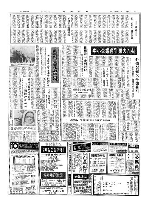 - 保社部(보사부)방침 영세민에 生業資金(생업자김) 4月(월)부터 50~100萬(만)원 低利(저리)융자