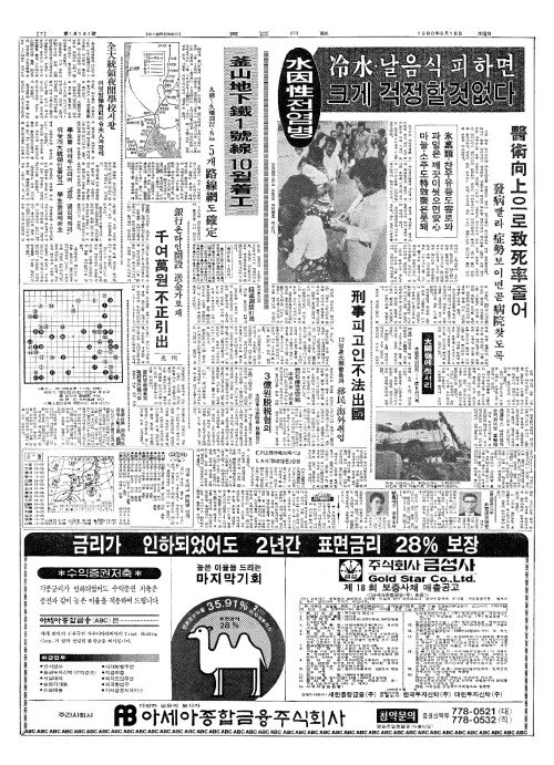 - 水因性(수인성)전염병 冷水(랭수)·날음식 피하면 크게 걱정할것없다