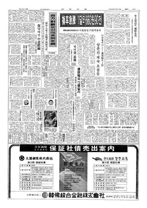 - 中小電子業(중소전자업)경영난 特別運轉資金(특별운전자김)지원 3千萬(천만)원限度(한탁)
