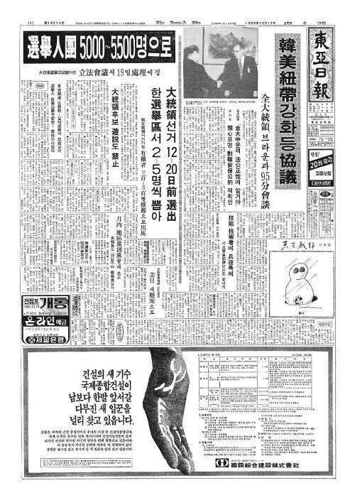 - 大統領選擧法試案(대통령선거법시안)마련 選擧人團(선거인단)5,000~5,500명으로