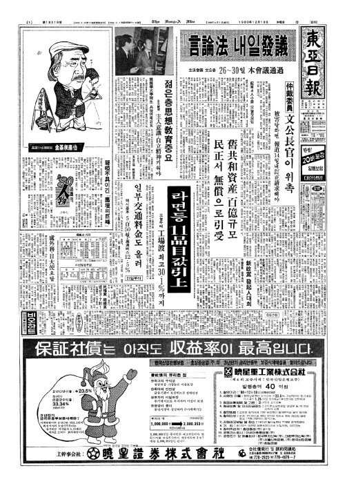 - 立法會議(입법회의) 文公委(문공위) 26~30일 本會議通過(본회의통과)「言論法(언론법)」내일發議(발의)