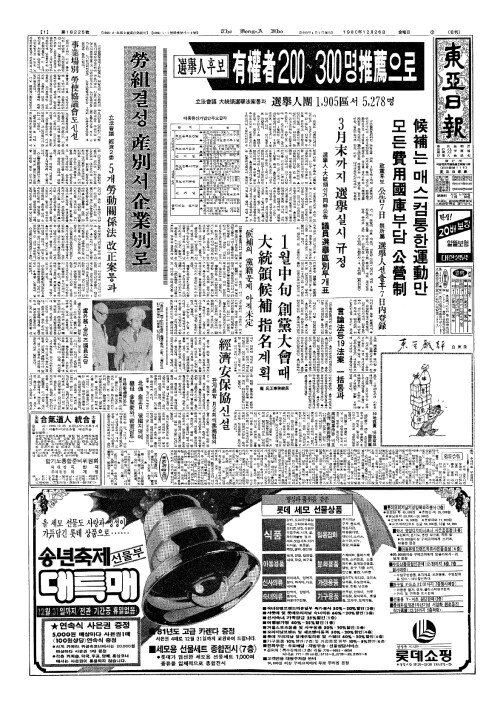 - 權(권) 民正事務總長(민정사무총장) 1월中旬(중순) 創黨大會(창당대회)때 大統領候補(대통영후보) 指名(지명)계획 "候補(후보)의 黨籍(당적)문제 아직未定(미정)"