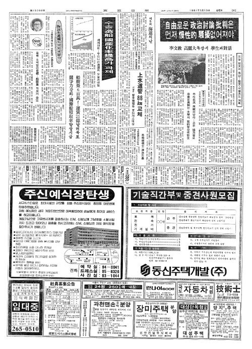 - 住公(주공) 7·5~15坪型(평형)아파트 11地域(지역) 4千(천)8百家口(백가구) 착공 分讓價(분양가)평당80萬(만)원