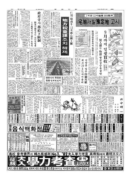 - 7개市(시) 12개地域(지역) 460萬坪(만평) 宅地(댁지) 개발 豫定地(예정지) 고시