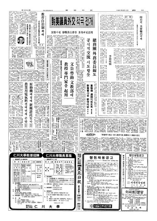 - 民正(민정) 教育自治制(교육자치제)확대 「行政(행정)경력자教職(교직)임용」수정示唆(시사)