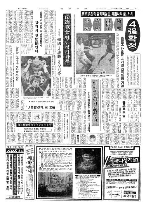 - 폭우·흙탕속 골키퍼울린「常識(상식)밖의 골」러시 4强(강)확정