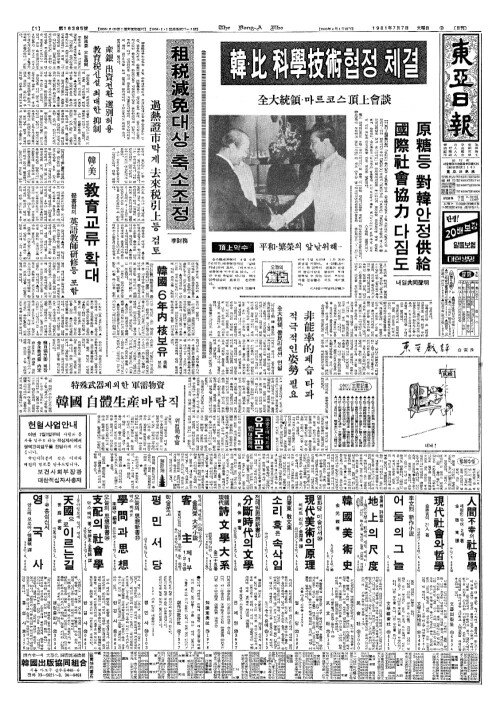 - 美(미) 信用保證(신용보증)차관 7千萬(천만)달러 늘려