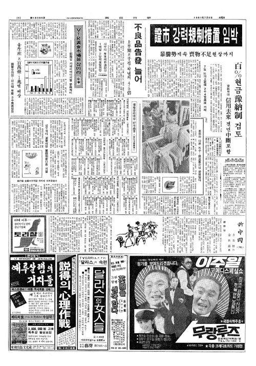 - 暴騰勢(폭등세)계속 賣物不足(매물부족)현상까지 證市(증시) 강력規制措置(규제조치) 임박