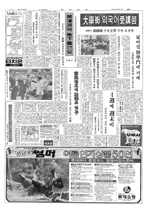 - 大學街(대학가) 외국어受講(수강)붐 放學(방학)맞아 護國團(호국단)·서클主管(주관) 거의 초만원
