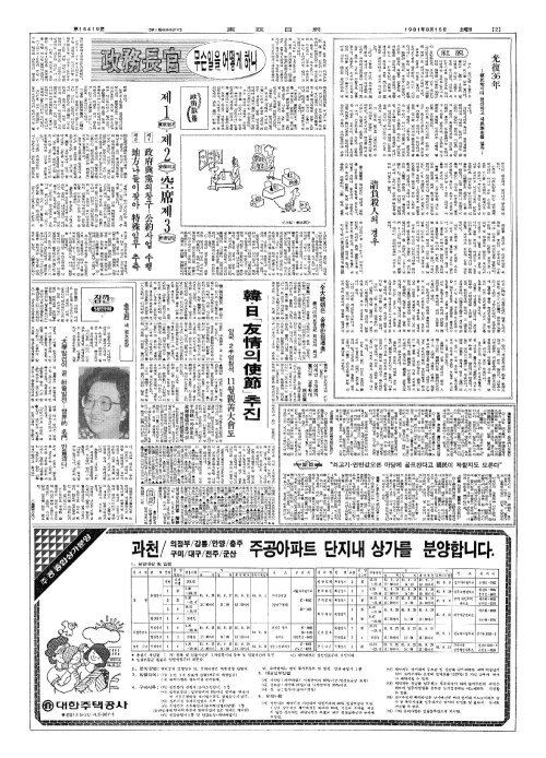 - 全大統領(전대통영)、光復節(광복절)경축사 平和(평화)통일—民主化(민주화)가 國家(국가)과제