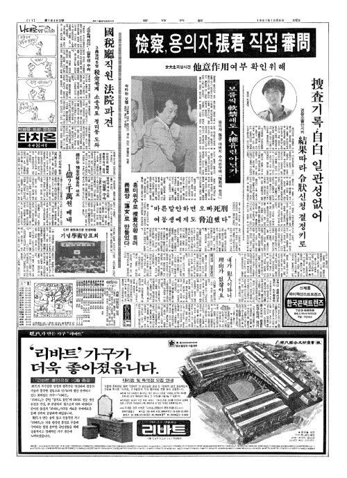 - 오늘의主要記事(주요기사) 檢察(검찰)서 張君(장군) 직접심문(11면)