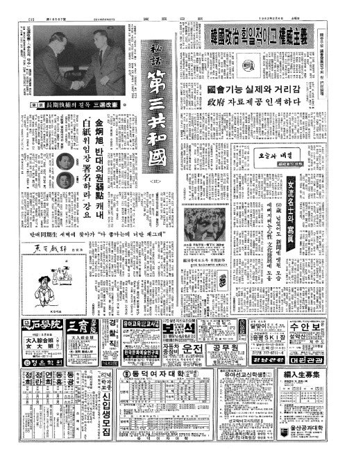 - "黨優位論(당우위론)은 한政黨(정당)이 사람만 바꾸며 執權(집권)하자는것"