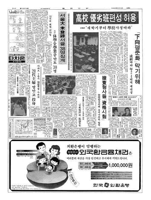 - 文教部(문교부) 高校(고교) 優劣班(우렬반)편성 허용