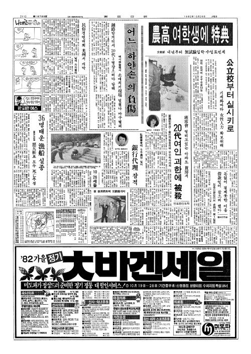 - 文教部(문교부) 農高(농고) 여학생에 特典(특전)