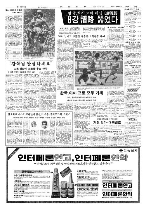 - 세계J축구 한국,멕시코에 헤딩…逆轉勝(역전승)「8강活路(활로)」뚫었다