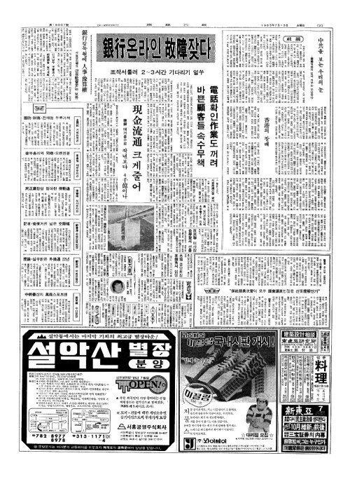 - 조작서툴러 2~3시간 기다리기 일쑤 銀行(은행)온라인 故障(고장)잦다