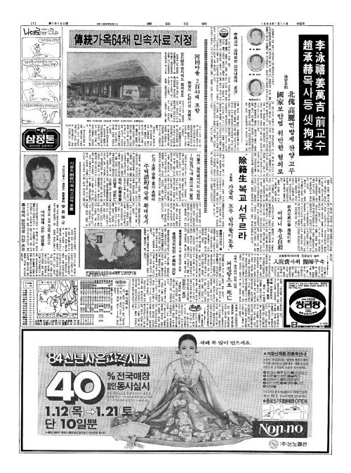 - 治安本部(치안본부) 李泳禧(리영희)·姜萬吉(강만길) 前(전)교수 趙承赫(조승혁)목사등 셋 拘束(구속)