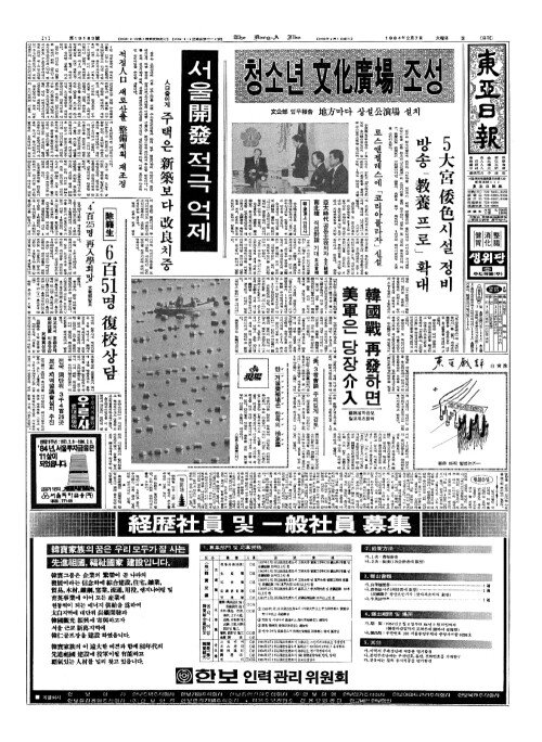 - 人口(인구)줄이게 서울開發(개발) 적극 억제 주택은 新築(신축)보다 改良(개량)치중