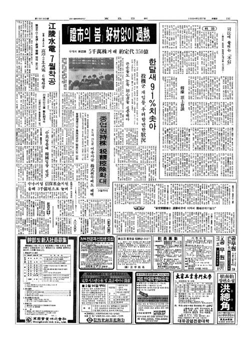 - 「證市(증시)의 봄」好材(호재)없이 過熱(과열)