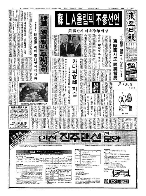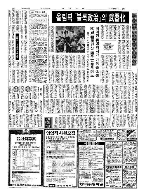 - [社説(사설)] 蘇聯(소련)의 올림픽不參(부참) 결정
