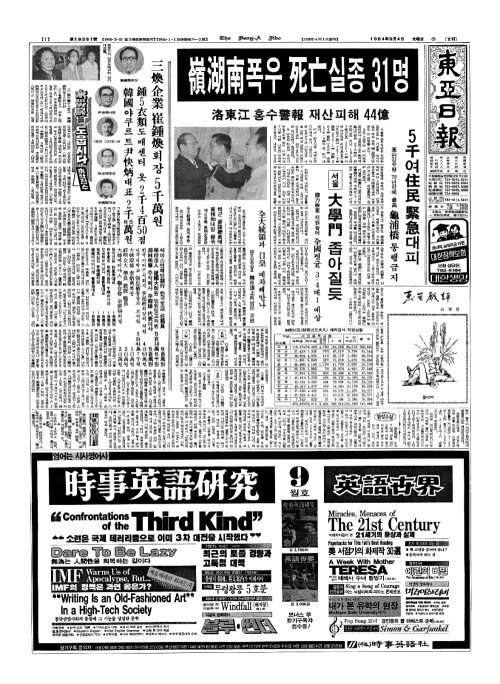 - 大田(대전) 暴雨人命(포우인명)피해 14명으로 최종집계
