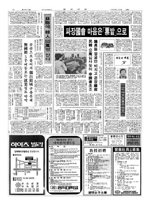 - 國會本會議(국회본회의) 權(권)문교 解任案(해임안)·學園(학원)사태 두特委案(특위안)
