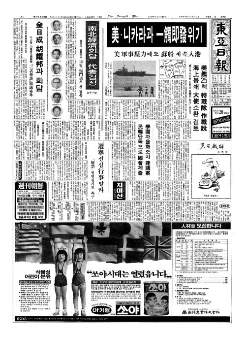- 美(미)·니카 라과 一觸即發(일촉즉발) 위기 美軍事壓力(미군사압력)에도 蘇船(소선) 계속入港(입항)