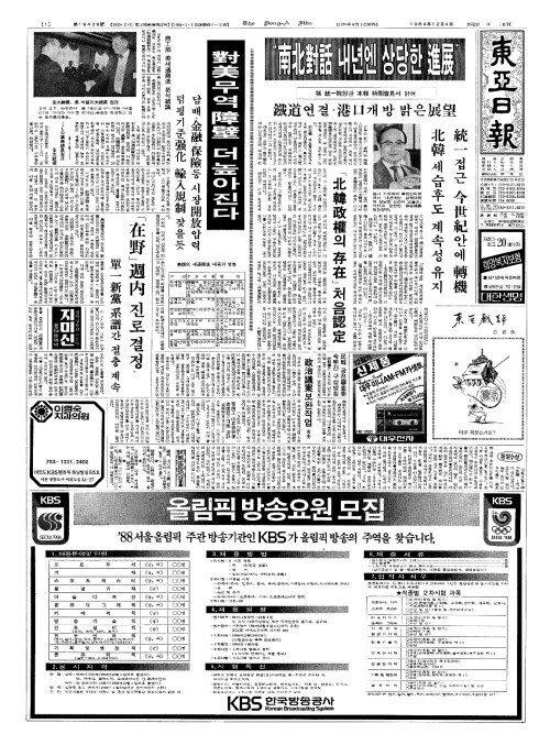 - 美(미) 오닐下院議長(하원의장) 連任(연임)