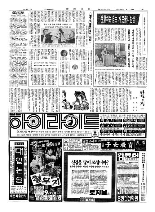 - 「民族(민족)문학의 밤」—金芝河(김지하)씨「民衆文學(민중문학)…」강연 "生動(생동)하는 自由(자유) 가 民衆(민중)의 참삶"