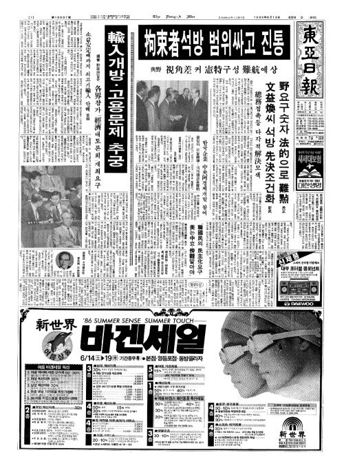 - "쇠고기·양담배 輸入(수입)개방않으면 안된다니 金(김)부총리는 美國長官(미국장관)이냐"