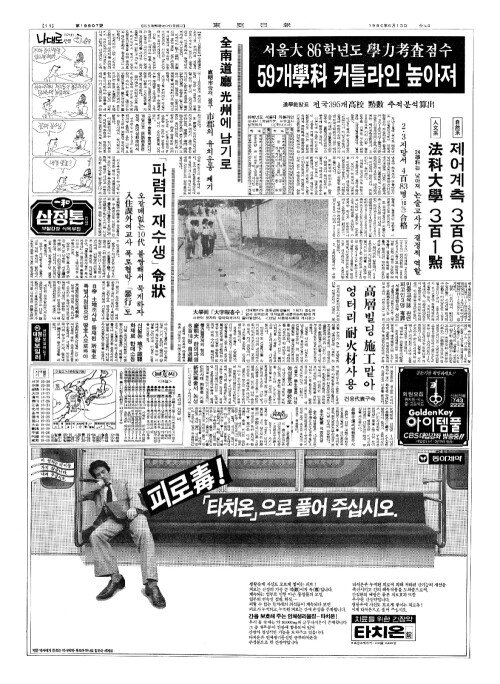 - 서울大(대) 86학년도 學力考査(학력고사)점수 59개學科(학과) 커틀라인 높아져