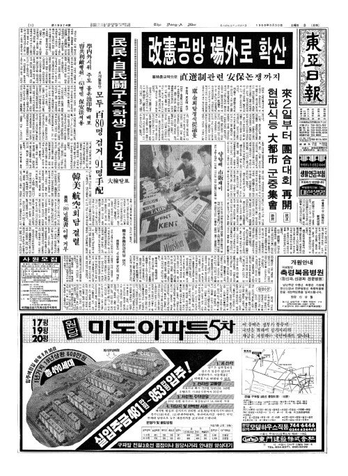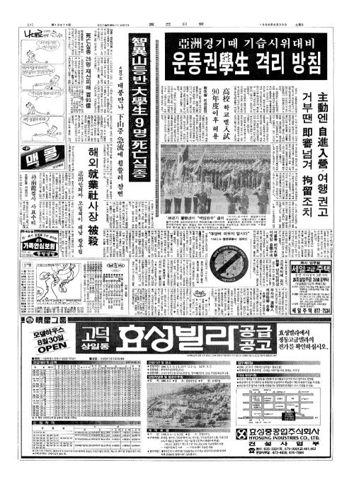 - 亞洲(아주)경기때 기습시위대비 운동권學生(학생) 격리 방침