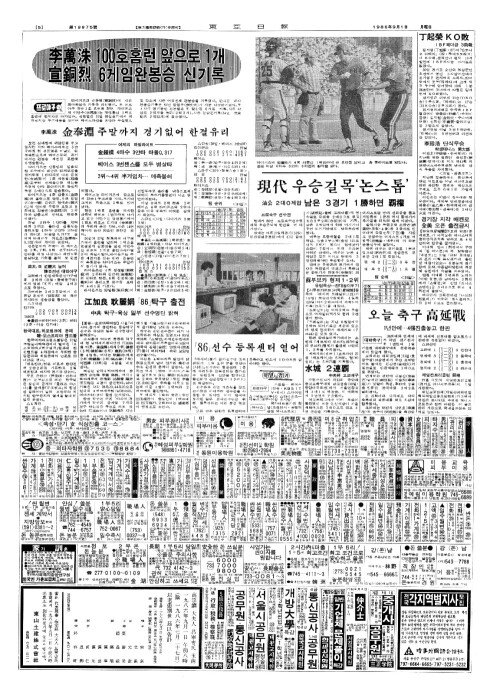 - 프로야구 李萬洙(리만수) 100호홈런 앞으로 1개 宣銅烈(선동렬) 6게임완봉승 신기록