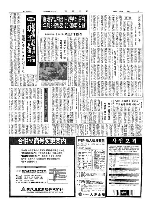 - 農地(농지)구입자금 내년부터 융자 年利(년리)3~5%로 20~30年(년) 상환