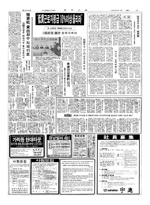 - "低賃(저임)근로자봉급 10%이상올리라"
