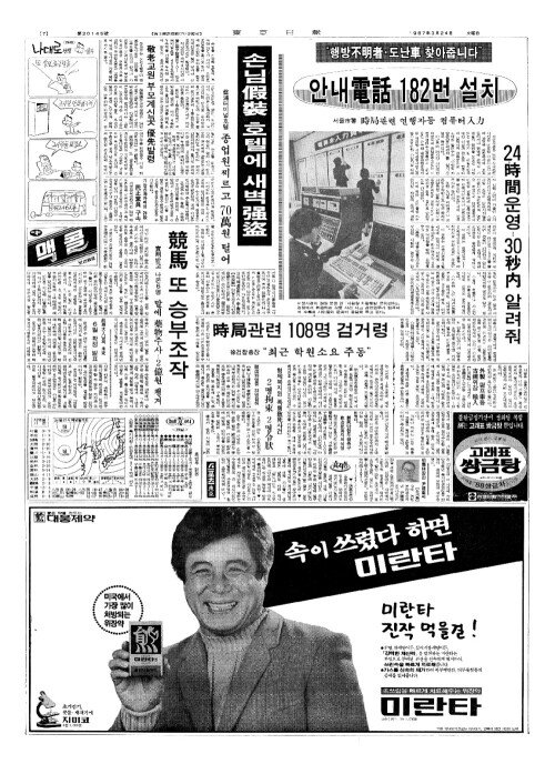 - "행방不明者(부명자)·도난車(차) 찾아줍니다"안내電話(전화) 182번 설치