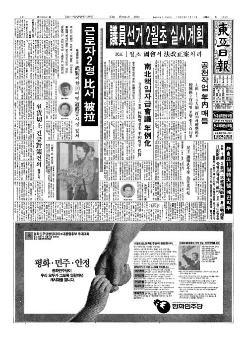 - 선거壁報(벽보)에非難(비난)스티커 民統聯(민통연)간부등3명立件(입건)