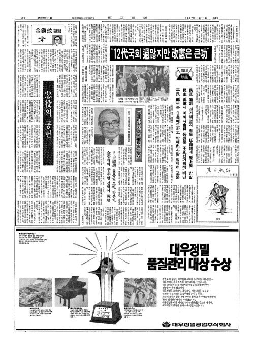 - 民主政治(민주정치) 金泳三(김영삼)씨 經濟(경제)발전 盧泰愚(노태우)씨 勞使(노사)해결 金大中(김대중)씨