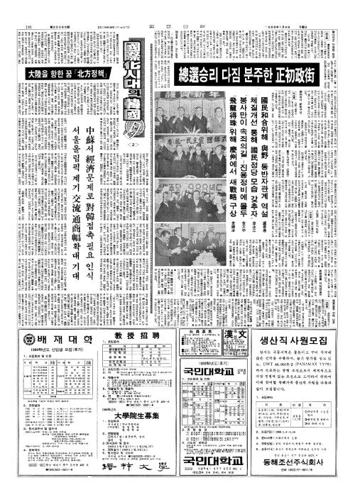 - 盧(로)당선자 직접교역 제의 中共(중공) 무조건排除(배제)는 안해