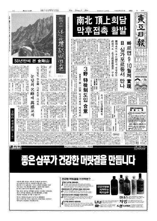 - [社說(사설)] 가까와진 金剛山(금강산)