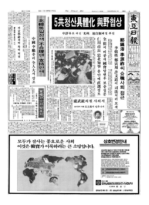 - 지하철분규 조속 해결 平民(평민)、姜(강)총리방문 촉구