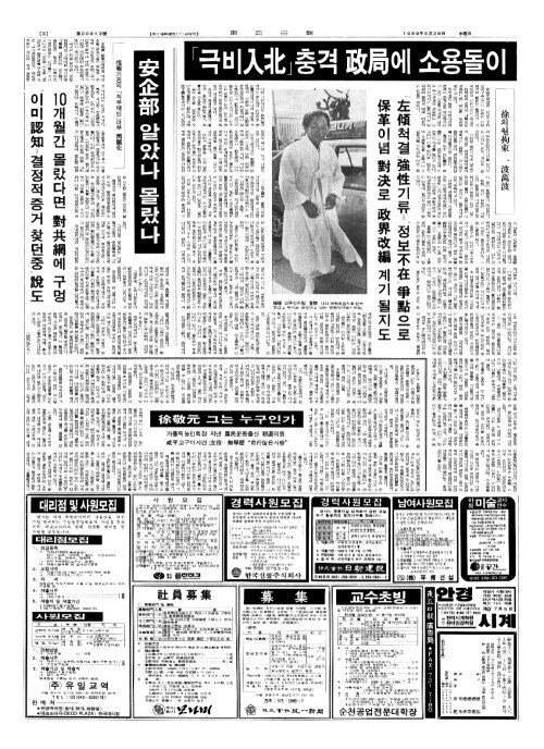 徐敬元(서경원)의원사건 계기 政局(정국)에「理念(리염)파문」예상