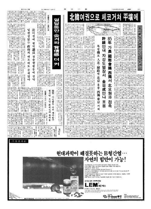 「극비入北(입북)」충격 政局(정국)에 소용돌이