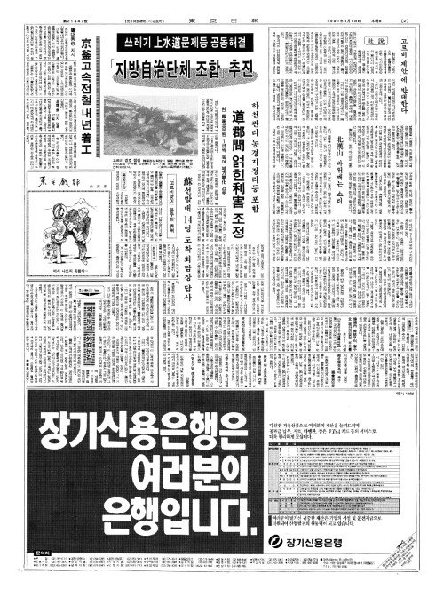 - 쓰레기 上水道(상수도)문제등 공동해결「지방自治(자치)단체 조합」추진