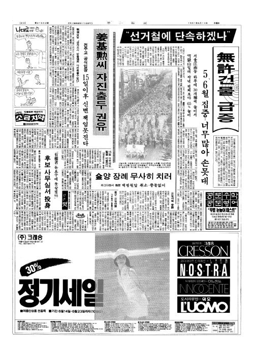 [票(표)밭 記者(기자)의 눈/金東哲(김동철)] 金泳三(김영삼)대표 釜山(부산)집회