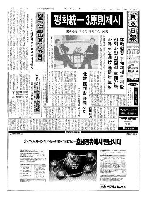 - 南北(남북) 유엔가입으로 무력대결시대 끝나 金大中(김대중)대표 美(미)연설
