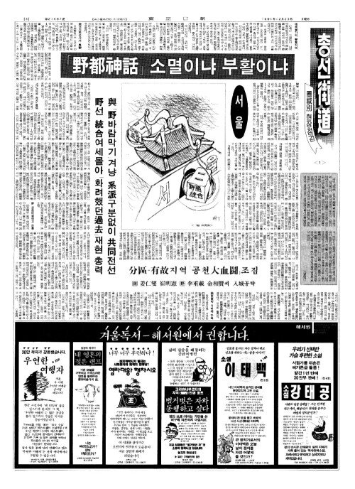 - [독자의 편지/최형규] 「돈안드는選擧(선거)」구호뿐 與野(여야)합의 선거法(법) 실망