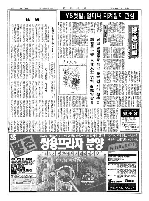 - 權翊鉉(권익현) 鄭鎬溶(정호용)씨등 民自(민자)전국구영입추진
